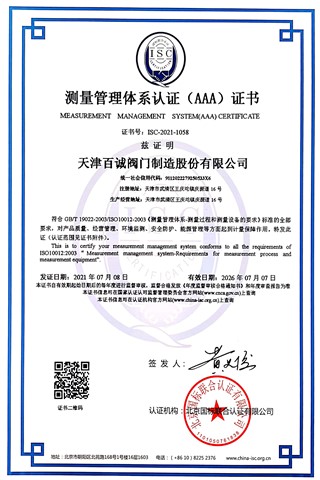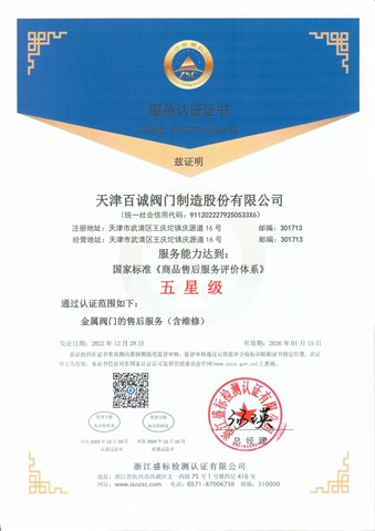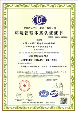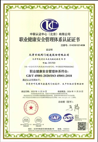 百诚阀门不仅视产品质量为企业生命,而且具有高度的社会责任感,通过了机械行业全部常见国际认证体系,包括:ISO9001:2015质量管理体系、ISO14001:2015环境管理体系、ISO45001:2018职业健康安全管理体系的认证。